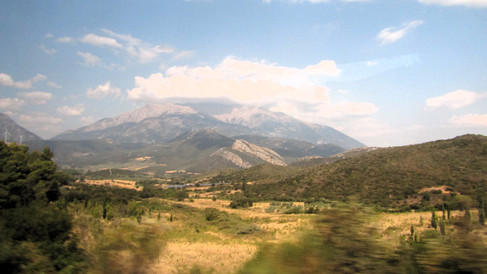 We took a day trip to Delphi, about two hours drive from Athens. We leave the city behind and we are soon in the rural countryside, where farmers grow corn and watermelon. The mountains — real mountains, not hills — loom in front of us.