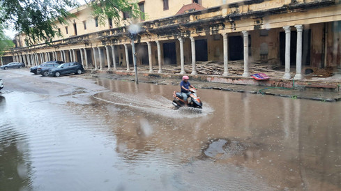 Going back outside into the old city streets, wet feet was the least of the locals' problems. Apparently the drains are notorious for blocking up with discarded plastic bags when it rains. We saw a few brave souls crouched down in the water trying to unblock the bags and the drains.