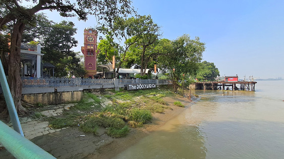 Kolkata has a population of 4.5 million, the fourth biggest megacity in India. The Port of Kolkata is India's oldest operating port. Our ship is moored in the section from where indentured labourers set off in the 1800s to work in foreign lands: the Caribbean, South Africa, Mauritius, Fiji. Today this part of the port has been sold to developers who are building a high-end club and dining precinct, but it's a work in progress. Fortunately many of the old buildings, such as the famous Clock Tower, are being retained in the development.