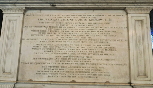 The church has a number of plaques that commemorate many British officials, including John Pattle who was such a liar that when he died, the devil wouldn't let him leave India, and he had to be pickled in rum to ship back to England, and then he sat up in the rum and his wife died of shock and had to be pickled in rum as well, then the sailors drank the rum and the ship exploded and so on. (That's according to William Dalrymple, a Scottish historian, who's excellent on the subject of India. It's not on the plaque.) Most of the plaques are sober and self-glorious, and assure us that the honoree is a man and a soldier and a Christian, and if he had a wife, she's sometimes mentioned in the last couple of lines.